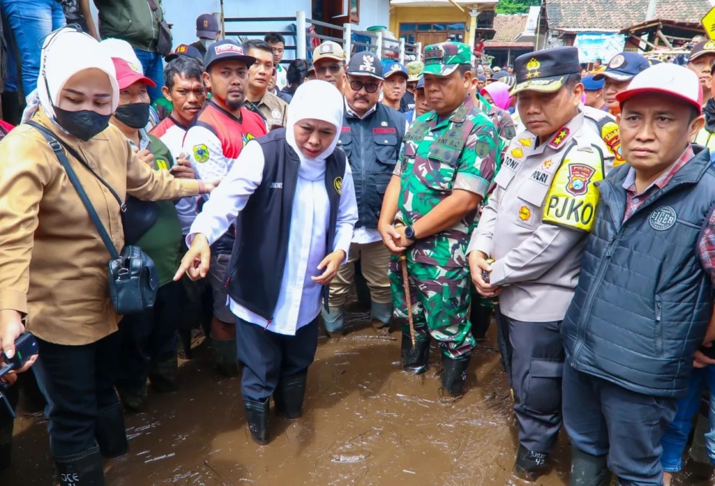 Bondowoso – Pangdam V/Brawijaya Mayjen TNI Farid Makruf, M.A. bersama Gubernur Jawa Timur, Khofifah Indar Parawansa dan Kapolda Jatim, Irjen Pol Toni Hermanto melakukan peninjauan lokasi pasca banjir yang terjadi di dua Desa yang ada di Kabupaten Bondowoso, Jawa Timur.
