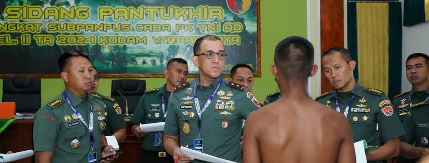 Malang,- Pangdam V/Brawijaya, Mayjen TNI Rudy Saladin, M.A, memimpin berlangsungnya sidang pantukhir tingkat Subpanpus dalam rangka seleksi Calon Bintara Prajurit Karier atau Caba PK TNI-AD gelombang II, tahun 2024.
