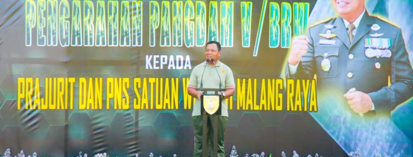 Hal itu disampaikan Pangdam V/Brawijaya saat memberikan pengarahan usai olahraga bersama prajurit dan PNS Satuan Wilayah Malang Raya di Lapangan Rampal Jalan Panglima Sudirman No.64, Kesatrian, Kecamatan Blimbing, Kota Malang, Jawa Timur.