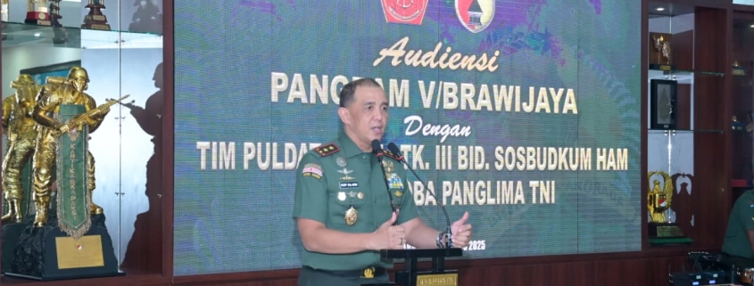 Surabaya,- Pa Sahli Tingkat III Bidang Sosbudkum HAM dan Narkoba Panglima TNI, Mayjen TNI Agus Isrok Miroj, menggelar audiensi di Ruang Hayam Wuruk Makodam V/Brawijaya, Surabaya. Senin (25/08/2025).