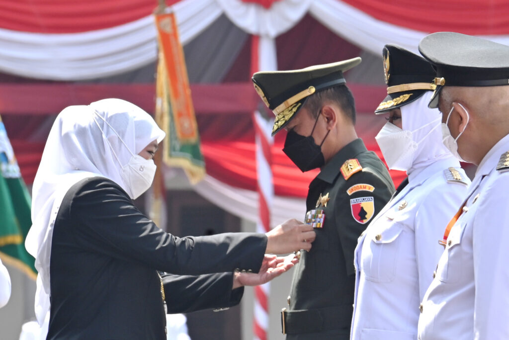Surabaya – Pangdam V/Brawijaya Mayjen TNI Nurchahyanto, M.Sc., menerima penghargaan lencana emas Jer Basuki Mawa Beya dari Gubernur Jawa Timur Ibu Khofifah Indar Parawansa. Penganugerahan penghargaan tersebut bertepatan dengan peringatan Hari Jadi ke-77 Provinsi Jawa Timur yang digelar di Gedung Negara Grahadi Surabaya, Jalan Gubernur Suryo, Kota Surabaya, Rabu, (12/10/2022).