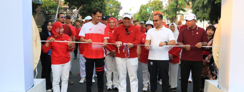 Probolinggo,- Dandim 0820/Probolinggo Letkol Arh Iwan Hermaya bersama jajaran forum koordinasi pimpinan daerah (Forkopimda) Kota Probolinggo menghadiri launching pasar minggu dan senam bersama di kawasan museum Jalan Suroyo yang di fasilitasi oleh DKUPP Kota Probolinggo.
