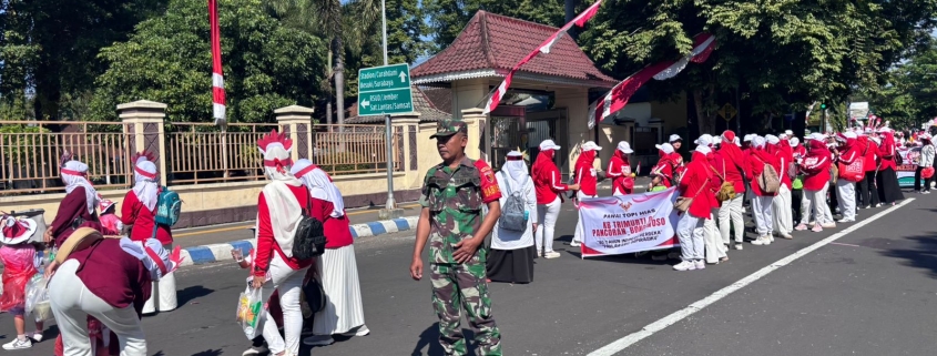 Bondowoso –– Suasana meriah mewarnai Kecamatan Bondowoso saat pawai topi hias ibu dan anak dalam rangka memperingati HUT ke-80 Republik Indonesia, Senin (25/8). Acara yang diikuti oleh peserta dari KB, PAUD, dan TK se-Kecamatan Bondowoso ini berlangsung meriah dan penuh antusiasme masyarakat.