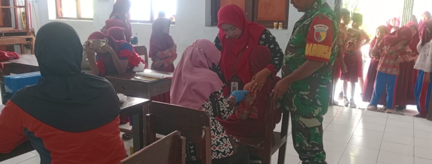 Peduli Kesehatan, Babinsa Bendo Ikut Sukseskan Bulan Imunisasi Anak Sekolah