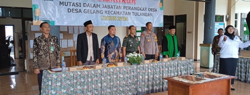 Sidoarjo,– Pemerintah Desa Gelang, Kecamatan Tulangan, Kabupaten Sidoarjo, menyelenggarakan acara pengambilan sumpah jabatan dan pelantikan perangkat desa (Kamituwo) hasil mutasi jabatan. Bertempat di Balai Desa Gelang, acara berlangsung khidmat dengan dihadiri berbagai elemen masyarakat dan jajaran pemerintahan.
