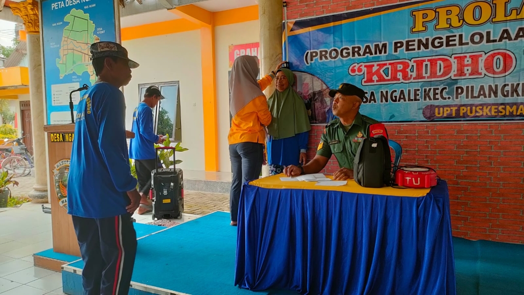 Madiun, – Babinsa Desa Ngale, Koramil Tipe B 0803/10 Pilangkenceng, Serka Agus Supriyanto, mendampingi Bidan Desa dan Kader Posyandu dalam kegiatan pelayanan kesehatan bagi lansia di Desa Ngale, Kecamatan Pilangkenceng, Kabupaten Madiun, Jumat (10/1). Kegiatan ini bertujuan untuk meningkatkan kualitas kesehatan warga lanjut usia (lansia) melalui pemeriksaan rutin dan edukasi kesehatan yang dilaksanakan secara terjadwal.