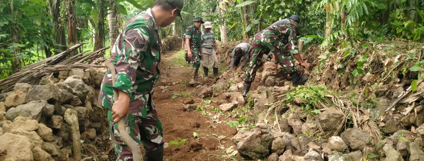 Banyuwangi,- Babinsa Koramil 0825/20 Songgon bersama Kelompok Tani Pacul Guwang melaksanakan karya bakti pelebaran jalan di Dusun Balak Kidul, Desa Balak, Kecamatan Songgon, Rabu (05/02/2025).