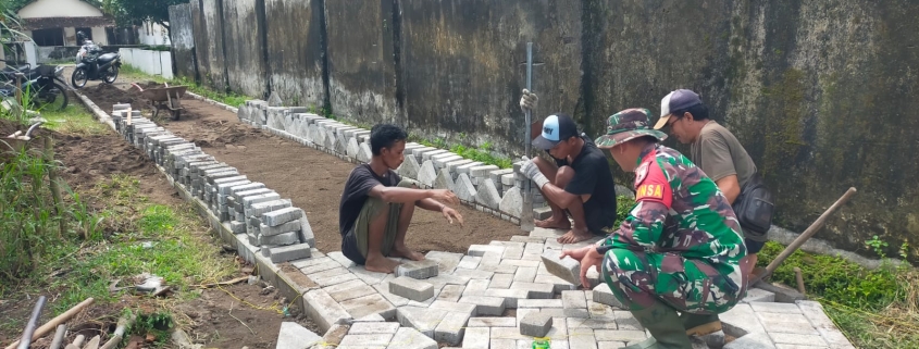 Pembangunan Fasilitas Umum: Babinsa dan Masyarakat Janti Bergotong Royong Pasang Paving Blok