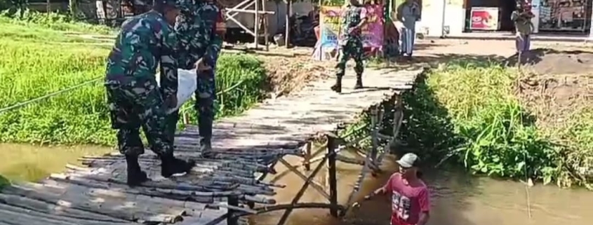 “Kondisi jembatan yang terbuat dari kayu sudah lapuk dan berlubang sehingga dapat membahayakan bagi pengguna jalan yang melintas, untuk itu kami bersama masyarakat setempat telah bersepakat melakukan pembangunan jembatan ini,” kata Sertu Agus Budiono, sabtu (31/5).
