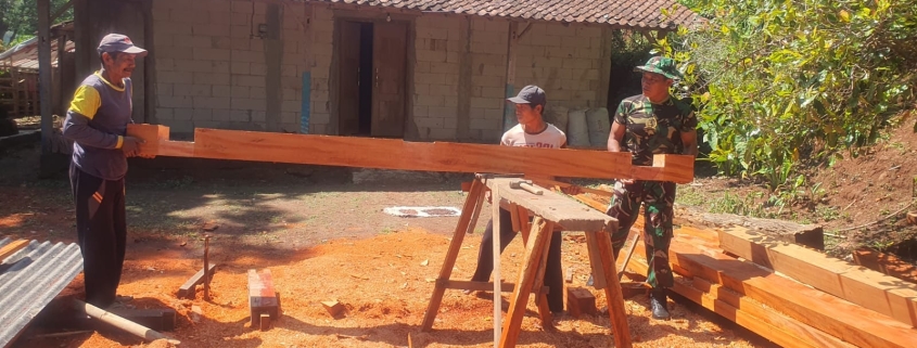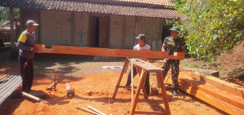 Madiun, 11 Agustus 2025 — Mentari pagi belum tinggi, namun derap langkah sudah menggema di halaman Mushola Al Hamid, Desa Ngranget. Di antara debu kayu dan denting palu, terlihat sosok berseragam loreng yang tak hanya memberi arahan, tetapi turut memikul balok, meraut kayu, dan menakar setiap ukuran dengan cermat dialah Lettu Inf Jaimin, perwira koordinator rehabilitasi mushola yang menjadi salah satu sasaran fisik dalam program TMMD ke-125 Kodim 0803/Madiun.