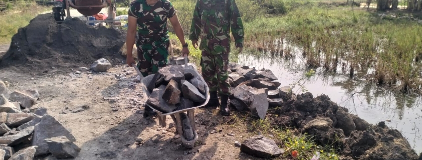 Lamongan, – Dalam rangka meningkatkan infrastruktur desa dan mendukung kelancaran transportasi warga, Anggota Koramil 0812/25 Sarirejo bersama Perangkat Desa Dermolemahbang dan masyarakat Dusun Bendil melaksanakan karya bakti pembangunan plengsengan penahan jalan atau Tembok Penahan Tanah (TPT) di Dusun Bendil, Desa Dermolemahbang, Kecamatan Sarirejo. Jumat (15/08/2025)