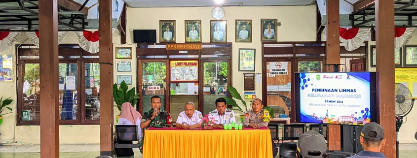 MADIUN – Sertu Hendro, anggota Koramil 0803/01 bersama tiga pilar melaksanakan kegiatan Pembinaan Linmas di Kelurahan Manisrejo. Kegiatan ini berlangsung pada hari ini, Rabu (21/5), bertempat di pendopo Kelurahan Manisrejo, Jalan Tanjung Raya No. 44, Kelurahan Manisrejo, Kecamatan Taman, Kota Madiun.
