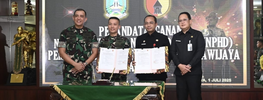 Kerjasama itu ditandai dengan adanya Naskah Perjanjian Hibah Daerah (NPHD) yang ditandatangani oleh Asrendam V/Brawijaya, Kolonel Kav Yudi Suryatin dan disaksikan langsung oleh Pangdam V/Brawijaya, Mayjen TNI Rudy Saladin, M.A, beserta PJU di lingkungan Kodam, sekaligus Sekda Pemprov Jatim, Adhy Karyono di Ruang Hayam Wuruk Makodam. Selasa (01/07/2025).