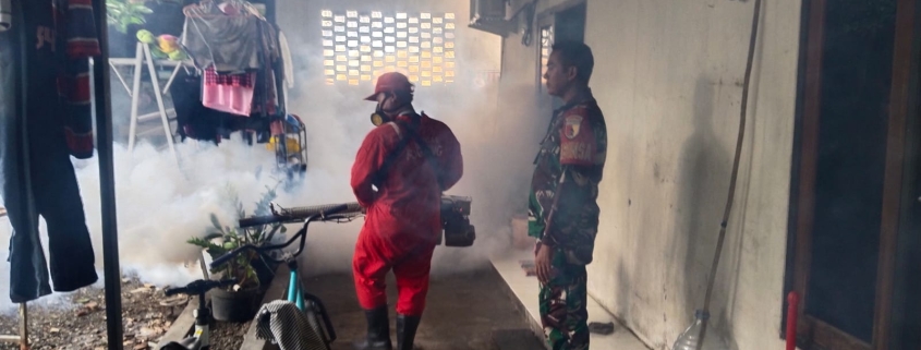 Surabaya,– Kasus Demam Berdarah Dengue (DBD) di RT 04 RW 06 Kelurahan Dukuh Kupang, Kecamatan Dukuh Pakis, Surabaya, mendorong Babinsa Kelurahan Dukuh Kupang Koramil 0830/19 Karangpilang, Serda Sudarmawan, untuk aktif mendampingi pelaksanaan fogging. Bersama Ketua RT 04, Pak Sugeng, kegiatan pengasapan ini dilaksanakan hari Sabtu (24/5) untuk mencegah penyebaran penyakit.