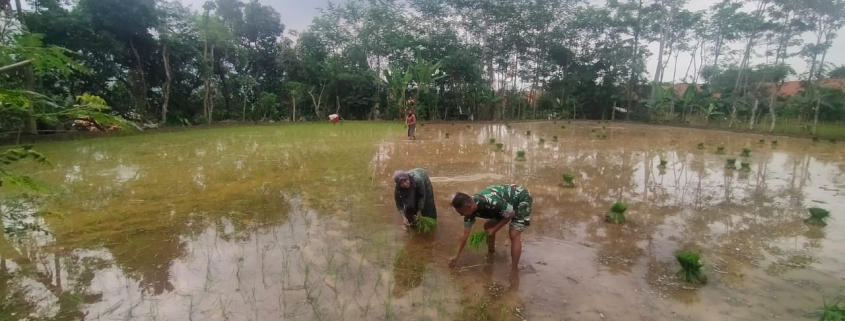 Babinsa Koramil 0820-10/Kuripan, Sertu Mustaka, melaksanakan pendampingan kepada petani Bapak Tosan dalam penanaman padi di lahan seluas setengah hektare yang terletak di Dusun Watuewu, Desa Kedawung, Kecamatan Kuripan, Kabupaten Probolinggo. Pendampingan dilakukan sejak tahap awal penanaman hingga masa panen.