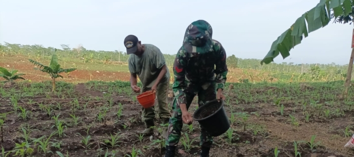 Jombang – Babinsa Koramil 17/Wonosalam, jajaran Kodim 0814/Jombang, Koptu Deki melaksanakan pendampingan kepada petani dalam pemupukan jagung milik kelompok mekar sari, di desa Sumberjo, Kecamatan Wonosalam,Kabupaten Jombang, Jum’at (6/12/2024).