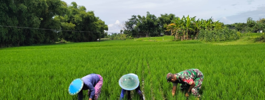 Ngawi – Pembinaan Teritorial dalam mewujudkan ketahanan pangan di wilayah terus ditingkatkan, Seperti yang dilakukan Serda Gaip Babinsa Koramil 0805/06 Kwadungan Kodim 0805/Ngawi dengan turun langsung ke sawah mendampingi kegiatan petani dalam kegiatan pendampingan perawatan tanam padi yang berada di Desa Budug Kec. Kwadungan Kab. Ngawi, Selasa (14/1/2025).