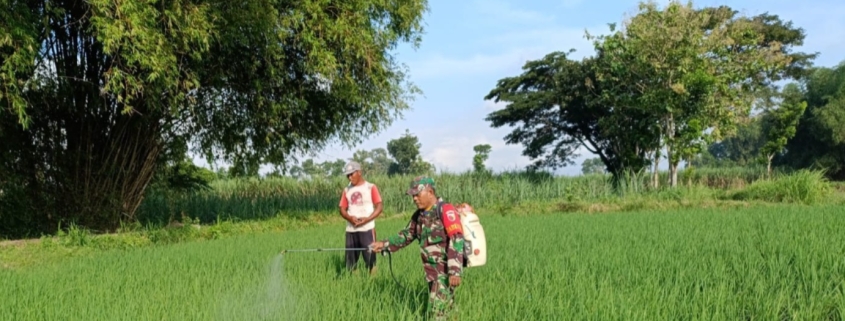 Pendampingan Pertanian: Babinsa Desa Bendiljati Wetan Terlibat Aktif dalam Perawatan Tanaman Padi