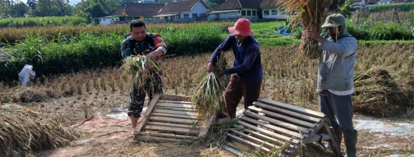 Blitar – Dalam upaya mendukung program ketahanan pangan di wilayah, Babinsa Desa Penataran Koramil 0808/05 Nglegok Kodim 0808/Blitar Serka Sulam melaksanakan kegiatan pendampingan pertanian dengan membantu proses panen padi serta melakukan komunikasi sosial (komsos) bersama petani di lahan milik Bapak Suhardi, anggota Kelompok Tani “Maju Tani”, yang berlokasi di RT. 04 RW. 10 Desa Penataran Kecamatan Nglegok Kabupaten Blitar, Sabtu (21/06/2025).
