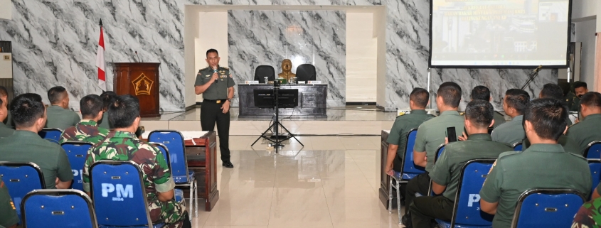 Surabaya, – Aslog Kasdam V/Brawijaya Kolonel Inf Wahyu Hadi Soenaryo, S.Sos., M.M. membuka kegiatan sosialisasi Bujuk Log Tahun 2024 mengenai juknis penghapusan barang milik negara, Kamis (03/10/2024).
