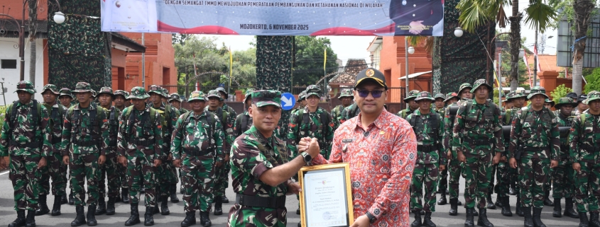 MOJOKERTO – Upacara penutupan TMMD ke-126 Kodim 0815/Mojokerto berlangsung khidmat di Pendopo Graha Maja Tama dan halaman Kantor Pemkab Mojokerto pada Kamis, 06 November 2025. Kegiatan ini dipimpin Aster Kodaf V/Surabaya Kolonel Laut Bagus Arianto sebagai Inspektur Upacara dan menjadi bagian penting percepatan pembangunan wilayah.