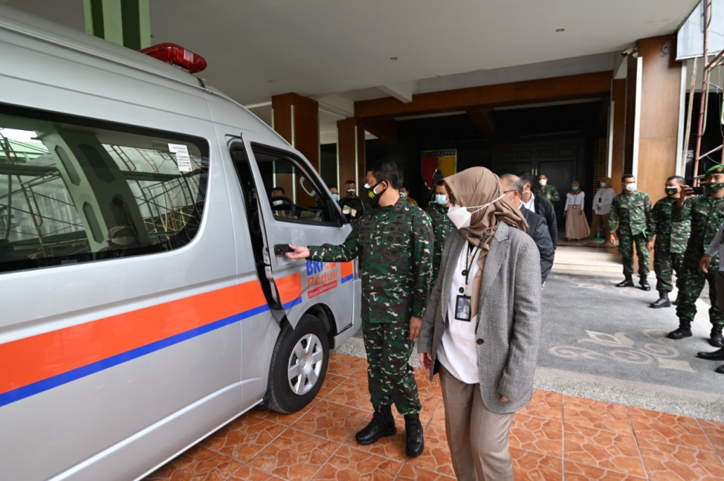 Penyerahan hibah Kendaraan ambulance dan kendaraan Jenazah dari Bank BRI kepada Kodam V/Brw