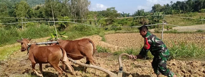 “Kami hadir di tengah-tengah masyarakat tidak hanya untuk menjaga keamanan, tapi juga ikut serta membantu petani menyiapkan lahan. Ini merupakan bentuk dukungan nyata kami terhadap program ketahanan pangan yang dicanangkan pemerintah,” ujar Serda Ahmad Mahfud.