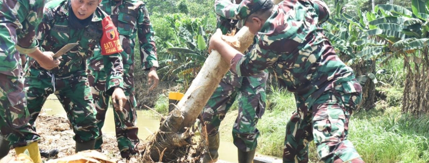 Malang,- Pasca meluapnya air yang terjadi di Desa Sitiarjo, Kecamatan Sumbermanjing Wetan, Kabupaten Malang, anggota Kodim 0818/Malang-Batu langsung bergerak cepat turun ke lapangan. Mereka bergabung bersama warga untuk melakukan pembersihan sisa material sampah yang terbawa arus air dan berserakan di jalan-jalan desa maupun rumah-rumah penduduk yang terdampak.