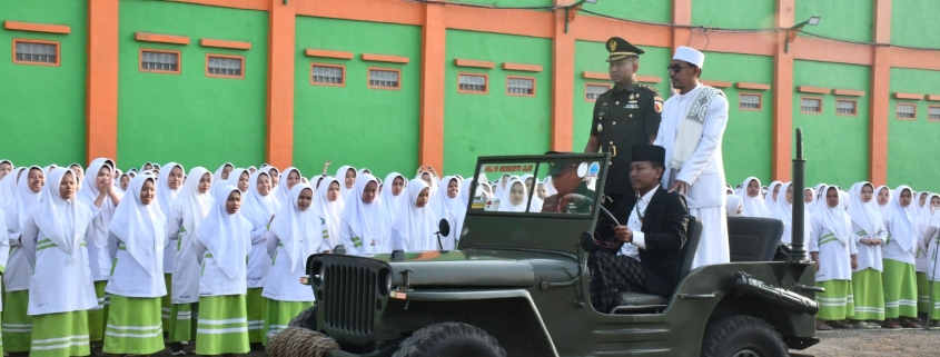 Kedatangan Dandim disambut hangat oleh KH. Ahmad Siddiq, pendiri Ponpes Nurul Islam. Tema Hari Santri tahun ini adalah “Menyambung Juang Merengkuh Masa Depan”.