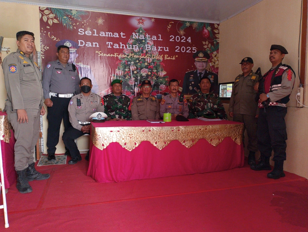 Surabaya, – Dalam rangka memastikan perayaan Natal 2024 dan Tahun Baru 2025 berjalan aman dan tertib, gabungan personel dari Koramil 0830/06 Benowo, Polsek Pakal, dan Satpol PP melaksanakan pengamanan terpadu di Pos Pengamanan (Pos Pam) yang terletak di depan Sentral Wisata Kuliner (SWK), Kelurahan Babat Jerawat, Kecamatan Pakal, Kamis (26/12).