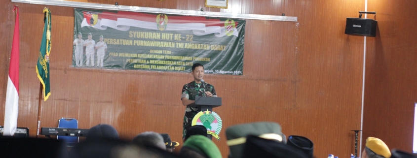 Nganjuk – Persatuan Purnawirawan Angkatan Darat (PPAD) Kabupaten Nganjuk menggelar peringatan Hari Ulang Tahun (HUT) ke-22 di Aula Sudirman Kodim 0810/Nganjuk dengan tema “Mewujudkan Kesejahteraan Purnawiran Pekokoh Persatuan dan Mensukseskan Asta Cita Bersama TNI Angkatan Daratâ€. Minggu (10/08/2025).