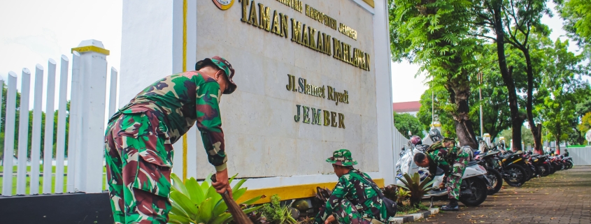 Dandim 0824/Jember, Letkol Arm Indra Andriansyah, G.Dip., M.Han., dalam keterangannya menyampaikan bahwa karya bakti ini bukan sekadar rutinitas, melainkan wujud penghormatan kepada para pahlawan.