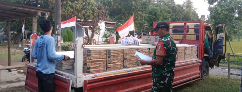 Sementara yang sudah ada bahan material bangunan berupa Semen, keramik dan kasiboard kami distribusikan ke sasaran secara bertahap sambil menunggu bahan material yang lain ada,” ucap Koptu Heri. S.