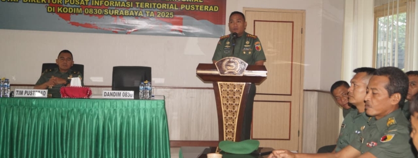Dandim 0830/Surabaya Kolonel Inf Bambang Raditya menyampaikan apresiasi atas kunjungan tim Pusterad, sekaligus menegaskan pentingnya peningkatan kualitas data teritorial di wilayah Kodim 0830 sebagai pondasi keberhasilan pelaksanaan tugas Binter. Ia menilai kegiatan ini memberi nilai tambah bagi satuan dalam meningkatkan kemampuan pembinaan wilayah.