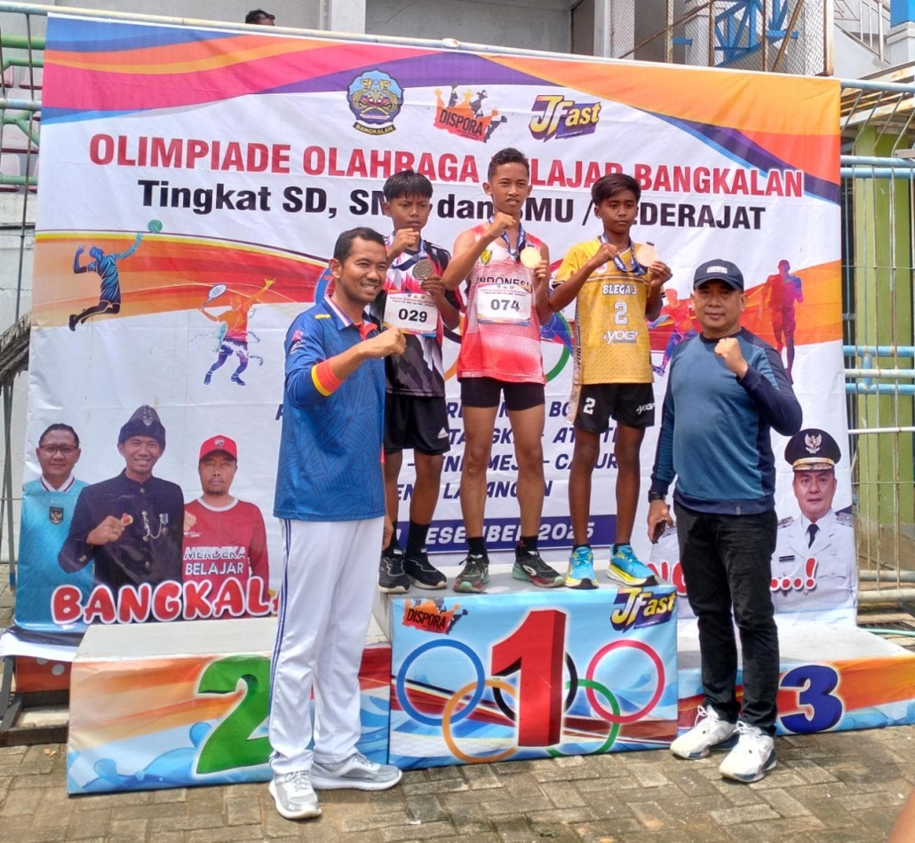 BANGKALAN – Haidar Hafidz Al Malik, siswa MIN 1 Bangkalan dan putra Sertu Moh Amin (Babinsa Koramil 0829-08/Tragah), mengharumkan nama Kodim 0829/Bangkalan. Ia meraih dua medali emas cabang atletik pada Olimpiade Olahraga Pelajar Bangkalan tingkat SD, SMP, dan SMA. Prestasi ini ditorehkan pada ajang yang digelar Senin, 22 Desember 2025.