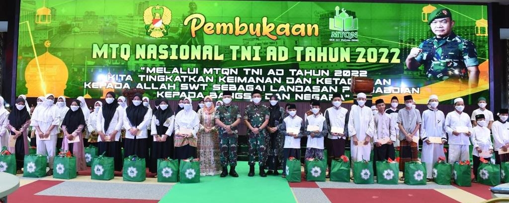 JAKARTA, tniad.mil.id- Musabaqah Tilawatil Qur’an Nasional (MTQN) TNI AD tahun 2022 diharapkan memunculkan qari-qariah terbaik dari prajurit TNI AD, yang mampu berkontribusi dalam membangun kualitas sumber daya umat yang unggul, kompetitif, dan berkarakter Islami, sebagaimana akhlak Rasulullah SAW.