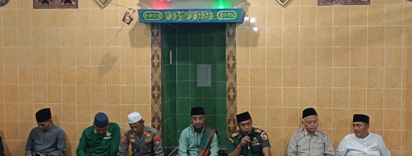 Banyuwangi.- Danramil 0825/01 Banyuwangi Kapten Kav Andoko menghadiri kegiatan Safari Ramadhan 1446 Hijriyah Tahun 2025 bertempat di Musholla Baiturrohman jalan Ikan Paus RT. 01 RW. 03 Lingkungan Krajan Sirodilagan Kelurahan Kepatihan Banyuwangi.