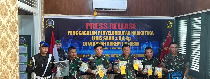 Pontianak,- Dankolakops Rem 121/Alambhana Wanawwai, Brigjen TNI Luqman Arief, kembali mengumumkan keberhasilan Satgas Pamtas RI-Malaysia Yonzipur 5/ABW dalam menggagalkan penyelundupan narkoba jenis sabu seberat 8,4 kg. Pengungkapan ini menandai perubahan modus operasi jaringan penyelundup narkoba di wilayah perbatasan.