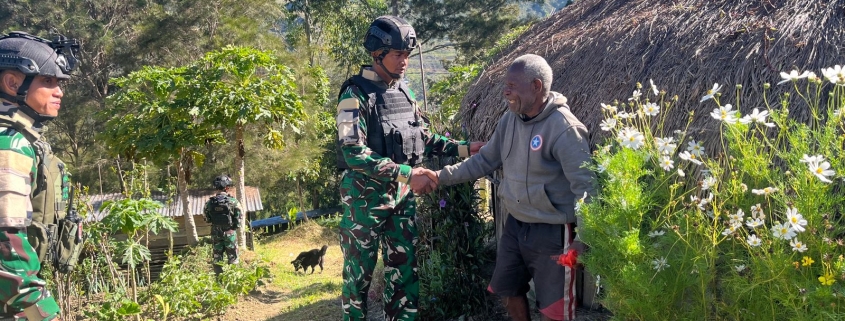 Lanny Jaya – Distrik Pirime, Satgas Pamtas RI-PNG Yonif 511/DY pos Pirime dipimpin Danpos Pirime Letda Inf Wahyudin berkunjung ke rumah tokoh agama di Pirime, yakni Bapak Gembala Yotan Wanimbo. Bapak Yotan Wanimbo sendiri merupakan gembala di Gereja Baptis Wiyaware.