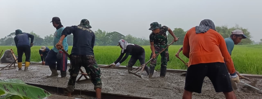 Satgas TMMD dan Warga Sumbertanggul Tetap Lanjutkan Pengecoran Jalan Meski Diguyur Hujan