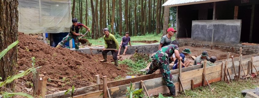 Tulungagung – Satgas TNI Manunggal Membangun Desa (TMMD) ke-123 Kodim 0807 Tulungagung bersama warga terus berjibaku menyelesaikan pembangunan fasilitas Mandi, Cuci, Kakus (MCK) umum di Bumi Perkemahan Jurang Senggani, Desa Nglurup, Kecamatan Sendang, Kabupaten Tulungagung, Sabtu (01/03/2025).
