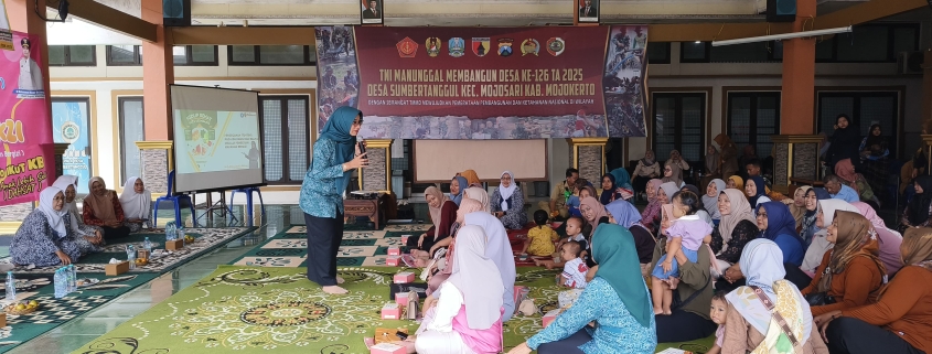 MOJOKERTO — Kegiatan TMMD ke-126 Kodim 0815/Mojokerto tidak hanya berfokus pada pembangunan infrastruktur, tetapi juga memperkuat kualitas sumber daya manusia. Salah satu bentuknya adalah penyuluhan dan sosialisasi masyarakat di Balai Desa Sumbertanggul, Kecamatan Mojosari, Kabupaten Mojokerto, Selasa (21/10/2025).