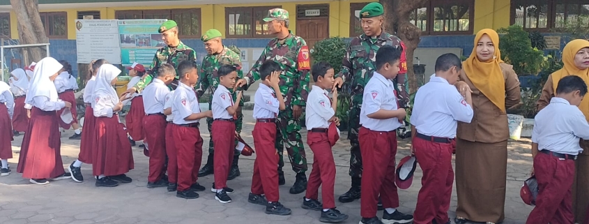 Selain menjadi inspektur upacara, personel Satgas TMMD juga turut membantu mengatur barisan serta mendampingi para siswa selama kegiatan berlangsung. Hal ini menunjukkan kedekatan dan sinergi positif antara TNI dan dunia pendidikan di wilayah setempat.