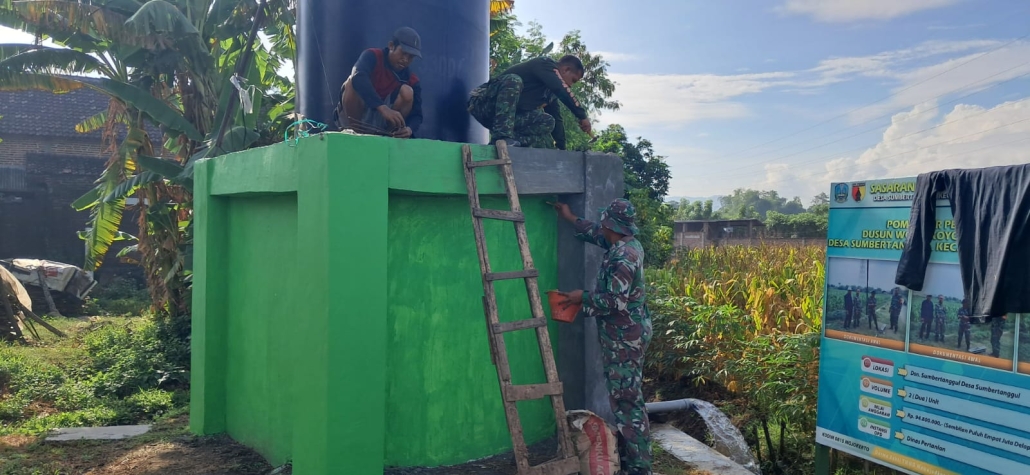 Terlihat di lapangan, anggota Satgas TMMD bersama warga bergotong royong melanjutkan pekerjaan pengecatan dan penyempurnaan bangunan pompa air. Kegiatan dilakukan dengan penuh semangat, mencerminkan kuatnya sinergi antara TNI dan masyarakat dalam mempercepat penyelesaian sasaran fisik demi kepentingan bersama.
