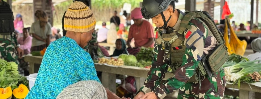 LANNY JAYA – Satgas Pamtas RI-PNG Kewilayahan Yonif 511/DY terus menunjukkan kepedulian terhadap masyarakat di daerah penugasan. Salah satunya dengan membeli hasil bumi penduduk lokal di Pasar Tradisional Kabupaten Tiom, Lanny Jaya, sebagai upaya membantu perekonomian masyarakat, Sabtu (03/01/2026).