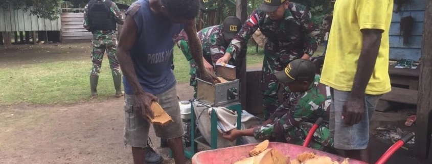 Satgas Yonif 511/DY Berikan Bantuan Mesin Pemarut Sagu Kepada Masyarakat Perbatasan RI-PNG