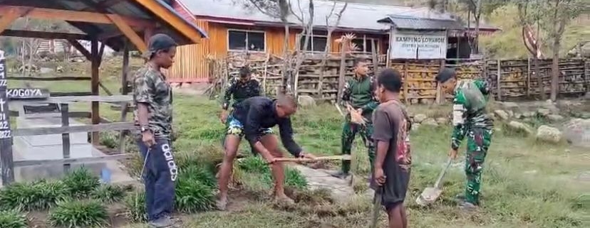 Satgas Yonif 511/DY dan Warga Lakukan Gotong Royong Wujudkan Lingkungan Sehat serta Perkuat Kemanunggalan TNI-Rakyat di Lanny Jaya