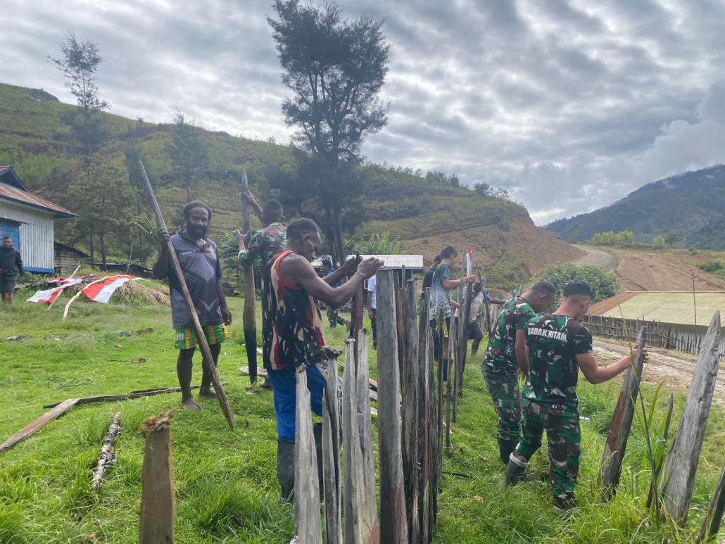 Danpos Balingga, Lettu Inf Arif Jumaedi, menjelaskan bahwa pembangunan pagar dimulai dari Puskesmas Distrik Balingga hingga Desa Tuwewak. “Personel Satgas dan warga bekerja sama bahu membahu mencerminkan semangat gotong royong yang kuat di tengah masyarakat selama kegiatan berlangsung,” ujar Danpos Balingga dalam keterangannya.