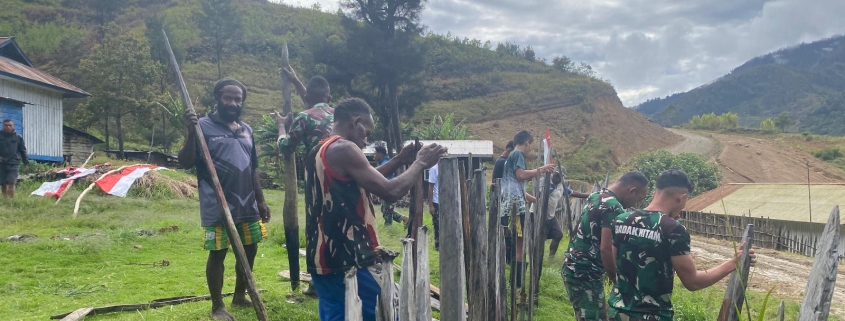 LANNY JAYA – Satgas Pamtas RI-PNG Kewilayahan Yonif 511/DY Pos Balingga menunjukkan aksi nyata kepedulian sosial melalui kegiatan Karya Bhakti mendirikan pagar di Distrik Balingga. Inisiatif ini menjadi bukti kehadiran TNI AD dalam menjalin silaturahmi serta memperkuat kerjasama sosial kemasyarakatan di wilayah Papua Pegunungan.