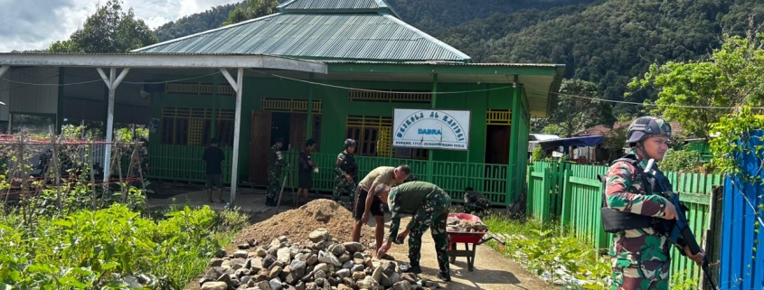 MEMBRAMO RAYA – Satgas Yonif 511/DY Pos Dabra melaksanakan karya bakti pembuatan selokan di halaman Masjid Al-Hafidzi sebagai upaya mempererat hubungan dengan masyarakat Muslim Distrik Dabra, Jumat (7/11/2025). “Kegiatan ini wujud kepedulian kami terhadap sarana ibadah,” ujar Letda Inf Catur Joko Santoso.